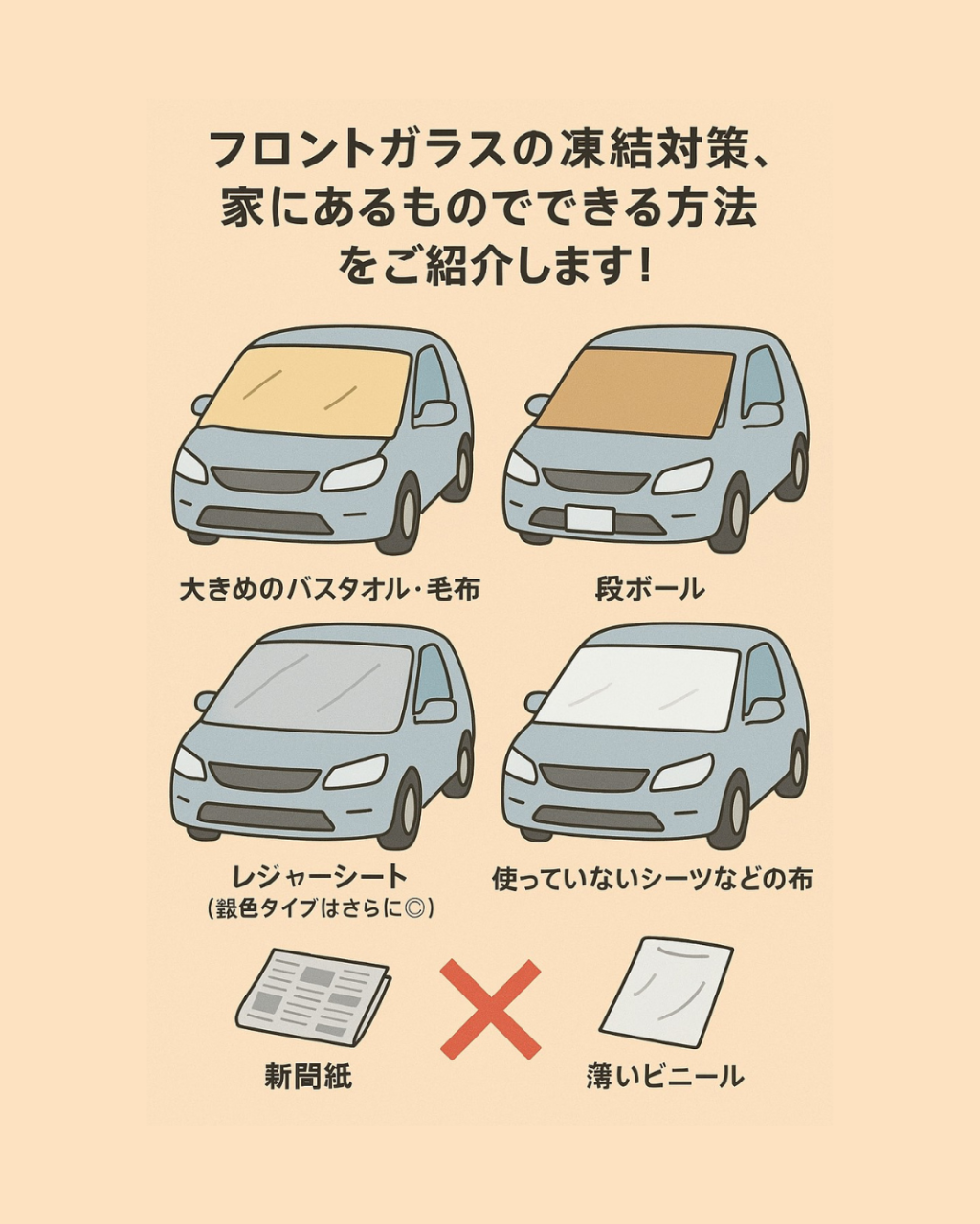 ❄️ フロントガラスカバーの代用品(家にあるもの)